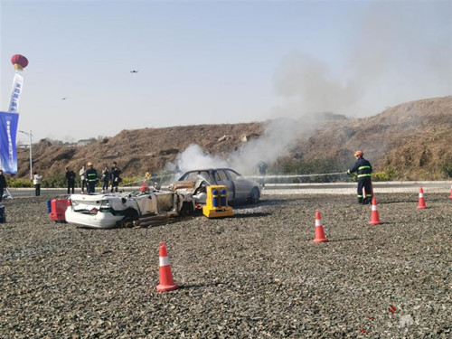 隨州安全應急基地是國內首家集真實災害場景、實戰(zhàn)演練、應急裝備測試等功能于一體的綜合性基地。本次裝備展采用靜態(tài)展示與動態(tài)展示相結合的方式,在傳統(tǒng)的固定展區(qū)基礎上,讓裝備“動起來”。動態(tài)展示環(huán)節(jié),現(xiàn)場模擬車輛著火后,兩臺載有鋰電池裝備的履帶式無人滅火車,通過火災監(jiān)測預警功能與硅膠納米結構抗溶泡沫滅火劑智能噴射系統(tǒng),有效撲滅現(xiàn)場火災,實現(xiàn)“發(fā)現(xiàn)即處置”,打造“感知—響應—滅火—轉移”一體化閉環(huán)。